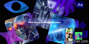 • 渐变玻璃样式的搜索框和logo开场动画AE模板
