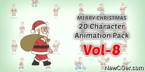 儿童动作姿势可爱角色人物卡通圣诞老人圣诞节孩子2D动画平面扁平化礼物