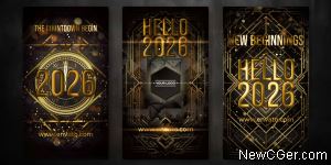 3款金色新年主题的竖版尺寸开场动画AE模板