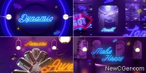 霓虹灯绚丽炫彩发光炫光八零彩色标题文字动画多彩明亮灯光渐变复古怀