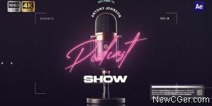 宣传片片头霓虹灯发光闪烁灯光绚丽炫光灯牌照片麦克风播客自媒体俱乐部